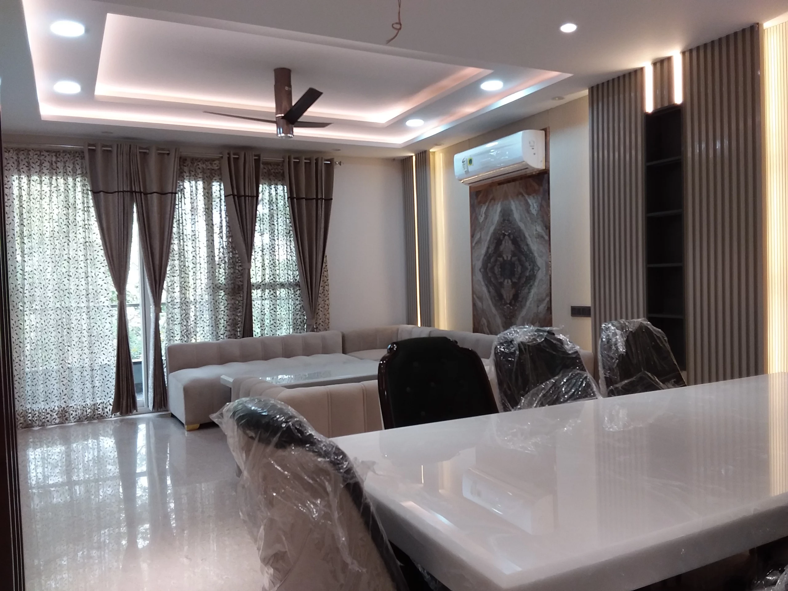 Our team curated a perfect blend of comfort and style, incorporating exquisite wall designs that served as a stunning backdrop. The carefully chosen sofa sets, center table, and chair designs created a harmonious and inviting atmosphere, allowing our clients to unwind and entertain guests in style.